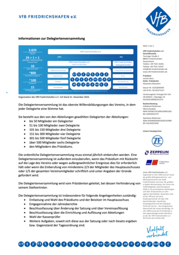 Die Delegiertenversammlung ist das oberste Willensbildungsorgan des Vereins, in dem jeder Delegierte eine Stimme hat. Sie besteht aus den von den Abteilungen gewählten Delegierten der Abteilungen: