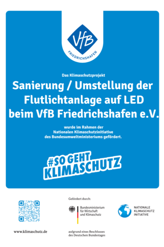 Zusätzlich zur Umrüstung der Beleuchtung entstanden Kosten für die Sanierung der Flutlichtmasten, einschließlich Korrosionsschutzmaßnahmen, sowie dem Abbau eines stark korrodierten und nicht mehr benötigten Mastens. Für diese Maßnahmen konnten wir einen Zuschuss bei der Stadt Friedrichshafen beantragen.