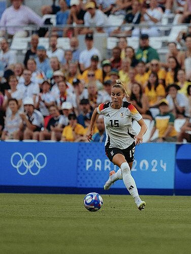 Fußball-Nationalspielerin Giulia Gwinn (Nummer 15) und Janina Minge (Nummer 14) wollen sich sich auf dem Weg zu einer Olympia-Medaille mit den DFB-Frauen vom Teamspirit der Männer bei der Heim-EM inspirieren lassen. „Ich finde es beeindruckend, wenn man von außen spürt, dass eine Mannschaft auch neben dem Platz funktioniert. Das wird auch bei uns der größte Schlüssel“, sagte Gwinn im Interview mit der Sport Bild. Giulia Gwinn spielte als Juniorin in der Bodenseeregion u. a. für: TSG Ailingen, VfB Friedrichshafen, FV Ravensburg, SV Weingarten und seit der Saison 2019/2020 für den FC Bayern München.